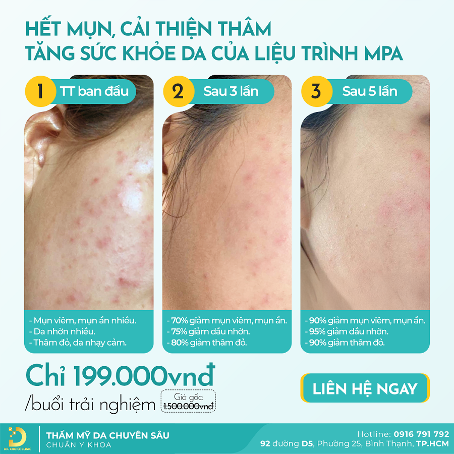Phục hồi da mỏng yếu, đỏ, giãn mạch do kem trộn/thuốc rượu, PRP)